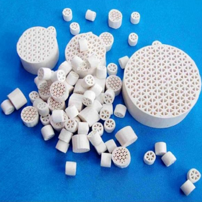 鳥巢支撐劑主要由AL?O?加高嶺土球磨制成粉,經(jīng)捏合機加入CMC攪拌后擠注、切割、燒結(jié)成型。具有較高的空隙率,能很好的吸附床層中的污垢,更好的氣液分布。
