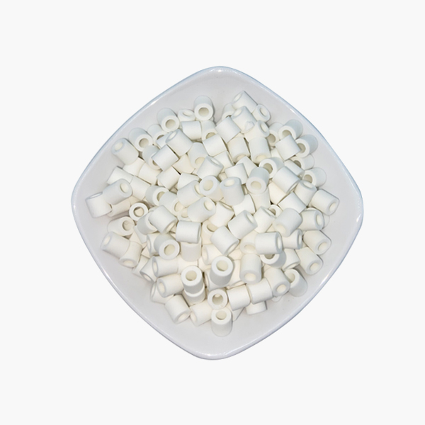 陶瓷拉西環(huán)填料是一種高徑相等的開孔環(huán)型填料,拉西環(huán)填料開孔率高,空隙大,通量大,阻力小,使得填料塔內(nèi)的氣體和液體能夠自由通過,填料層內(nèi)的氣體和液體分布情況較為良好,尤其是填料環(huán)內(nèi)表面容易被液體濕潤,使得內(nèi)表面得以充分利用。具有較大的通過能力和較低的壓降,塔的傳質(zhì)分離效率也高。