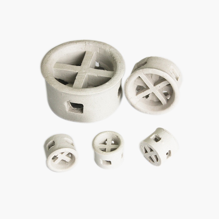 陶瓷階梯環(huán)吸收了短拉西環(huán)的特點,也改變了填料的環(huán)高與直徑相等的習(xí)慣,降低了環(huán)的高度,減薄了材質(zhì)的厚度,并在環(huán)的側(cè)端增加了翻邊。
