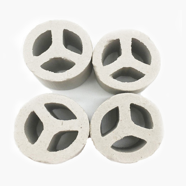 陶瓷三丫環(huán)填料是一種經(jīng)外觀獨(dú)特設(shè)計(jì)加工成的一種新型高效散堆填料,產(chǎn)品高徑比約為2:1,內(nèi)部設(shè)有一個(gè)或三個(gè)“Y”型隔板,這樣增大比表面積,提高了汽液分散性能,使汽液接觸更充分。三丫環(huán)填料是從階梯環(huán)、共鉅環(huán)、扁環(huán)、矩鞍環(huán)的基礎(chǔ)上以及在形狀、外觀和結(jié)構(gòu)綜合考慮,進(jìn)行取長(zhǎng)補(bǔ)短而改進(jìn)的。