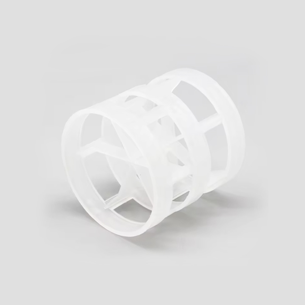 塑料鮑爾環(huán)填料是一種高徑相等的開孔環(huán)型填料,每層窗孔有5個(gè)舌葉,每個(gè)舌葉內(nèi)彎指向環(huán)心,上下兩層窗孔的位置相反錯(cuò)開,一般開孔面積約占環(huán)壁總面積的30%左右。這種結(jié)構(gòu)改善了汽液分布,充分利用了環(huán)的內(nèi)表面,從而使得填料塔內(nèi)的氣體和液體能夠從窗體自由通過(guò)。