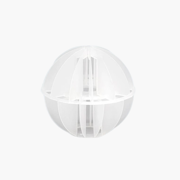 塑料多面空心球由兩個半球形成一個球體,每個半球由若干半扇形葉片組成 ,上下葉片交錯排列。該球的優(yōu)點是很容易在填料層完全堆疊,但不會造成橋接和孔效應現(xiàn)象,因此,促進了氣液分布均勻,多面空心球具有氣速高,葉片多,阻力?。槐缺砻娣e大,可充分解決氣液交換;具有阻力小操作彈性大等特點。